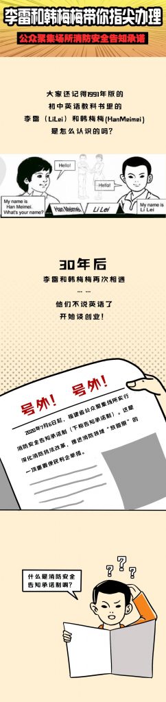 李雷和韩梅梅带你指尖办理公众聚集场所消防安全告知承诺